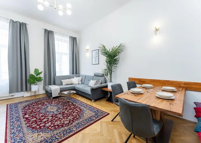 Situato a circa 25 minuti a piedi dalla Piazza della Città Vecchia, Rentero Apartment, 10 Minutes Wenceslas Square, Praga, di 70 m², proporziona un accesso conveniente a numerosi luoghi di interesse vicini.